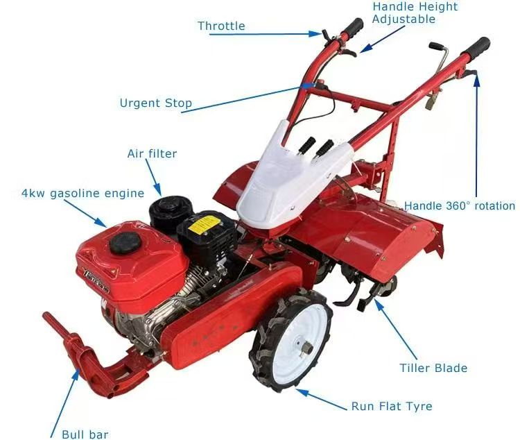 2. Leistungsstark und kraftstoffsparend: Ausgestattet mit einem 4-kW-Benzin- oder Elektromotor lockert der Mikro-Grubber effizient den Boden, entfernt Unkraut und mischtDüngemittel. Sein geringer Kraftstoff-/Stromverbrauch senkt die Kosten, während die einstellbare Bodenbearbeitungstiefe (5–15 cm) sich an unterschiedliche Bodenbedürfnisse anpasst.
