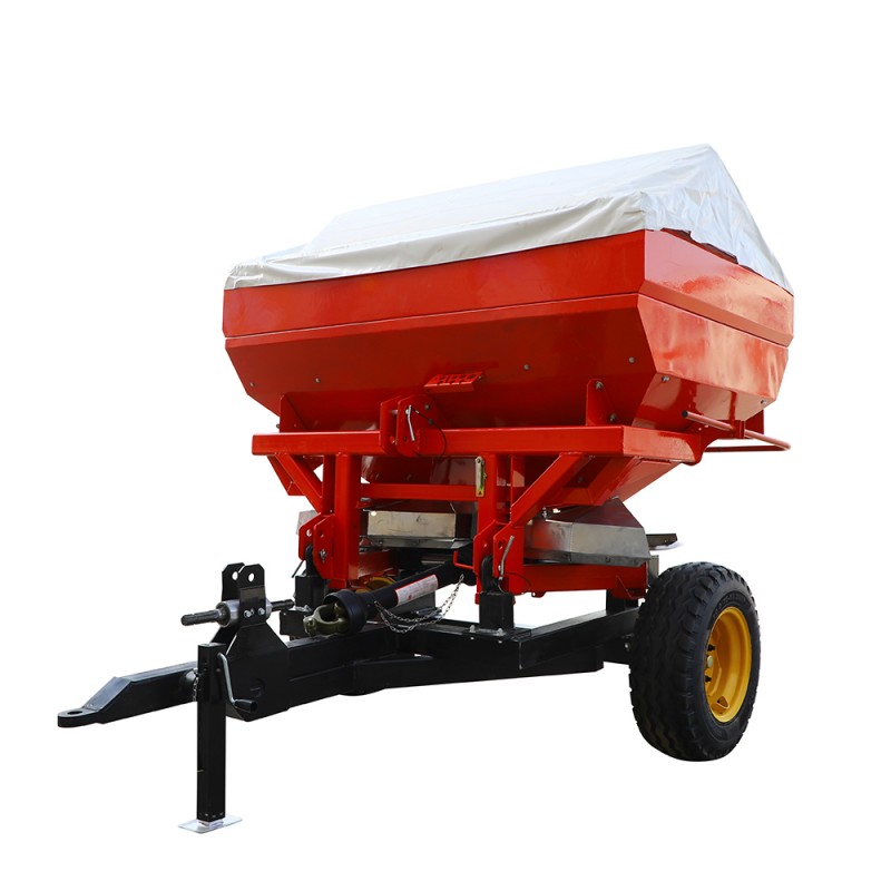 Der Traktionsdüngerstreuer besteht aus einem korrosionsbeständigen Trichter, einem Präzisionsübertragungssystem und einem stabilen Traktionsrahmen. Der Traktionsdüngerstreuer nutzt die Zugkraft, um die Streuscheibe anzutreiben, die den Dünger durch die Zentrifugalkraft gleichmäßig verteilt, wobei einstellbare Leitbleche die Ausgabe steuern.